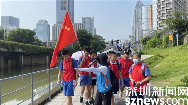 來(lái)自全市的50名學(xué)生志愿者在深圳市羅湖區(qū)東益環(huán)保志愿者協(xié)會(huì)會(huì)長(zhǎng)陳燕紅的帶領(lǐng)下,從東門(mén)迎賓廣場(chǎng)出發(fā),步行到布吉河?xùn)|門(mén)段的結(jié)尾。一路上,學(xué)生們身著“紅馬甲”,化身志愿者,每到一處地方都對(duì)周邊的垃圾進(jìn)行了清理,在夏日呈現(xiàn)出了一道最美的風(fēng)景線。