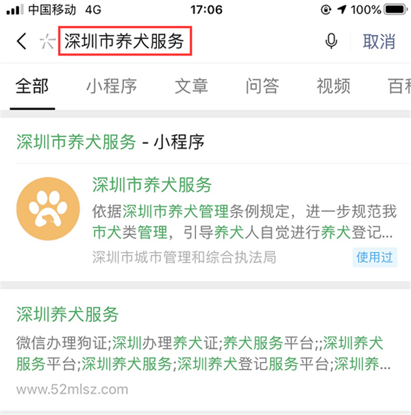 溫馨提示:尚未辦理養(yǎng)犬登記的市民朋友,可以登錄“廣東政務(wù)服務(wù)網(wǎng)”或通過微信搜索“深圳市養(yǎng)犬服務(wù)”小程序,足不出戶便可在線辦理養(yǎng)犬初始登記。養(yǎng)犬服務(wù)平臺(tái)可根據(jù)實(shí)際需求申請辦理初始、變更、注銷等登記事項(xiàng),還可進(jìn)行芯片預(yù)約、通過地圖查看養(yǎng)犬服務(wù)機(jī)構(gòu)(辦證點(diǎn)、犬傷門診)地址及聯(lián)系電話等。