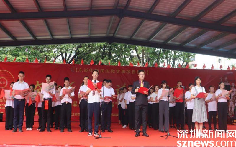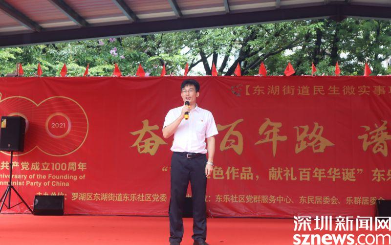 讀特客戶端·深圳新聞網(wǎng)2021年7月30日訊(見(jiàn)習(xí)記者 邱婕 通訊員 黃小花)百年征程波瀾壯闊、百年初心歷久彌堅(jiān)、百年成就催人奮進(jìn)、百年歌聲唱響今天。7月30日上午,“百幅紅色作品,獻(xiàn)禮百年華誕”東樂(lè)社區(qū)建黨100周年慶?;顒?dòng)在東樂(lè)花園文化廣場(chǎng)舉行。東湖街道黨工委副書(shū)記、辦事處主任劉慧堅(jiān),黨工委副書(shū)記、人大工委主任謝統(tǒng)敏,東湖街道二級(jí)調(diào)研員、東樂(lè)社區(qū)第一書(shū)記曾列文,東湖街道辦事處副主任李民,羅湖區(qū)退役軍人事務(wù)局副局長(zhǎng)何朝陽(yáng),東樂(lè)社區(qū)黨委書(shū)記劉芳,東樂(lè)社區(qū)社工與義工及廣大居民朋友400余人參與此次活動(dòng)。