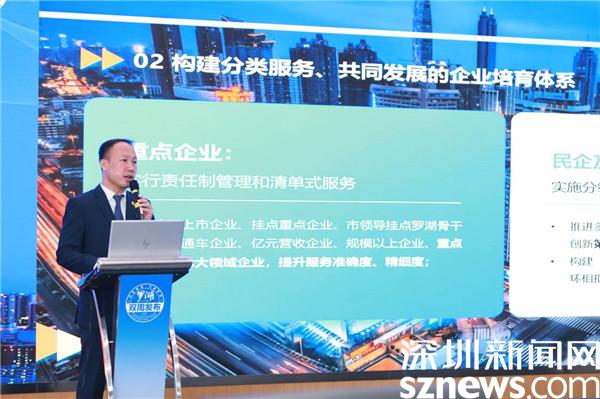 讀特客戶端·深圳新聞網(wǎng)2021年9月2日訊(記者 郭含笑)成立優(yōu)化營商環(huán)境領導小組,出臺優(yōu)化營商環(huán)境相關政策辦法,推出一系列服務企業(yè)的有力舉措,連續(xù)兩年被評為“中國營商環(huán)境百佳示范縣市”......一直以來,羅湖區(qū)高度重視營商環(huán)境優(yōu)化工作,9月2日,羅湖“雙周發(fā)布”企業(yè)服務專場舉行,羅湖區(qū)企業(yè)服務中心主任陳曉軍圍繞羅湖扶持政策、產(chǎn)業(yè)空間、服務升級等方面,帶來“數(shù)字賦能,服務升級,打造企聚羅湖生態(tài)圈”主題發(fā)布。