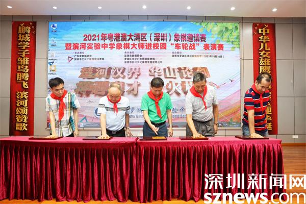 讀特客戶端?深圳新聞網(wǎng)2021年10月10日訊(見習(xí)記者 鐘林 通訊員 凌玲)10月10日上午,羅湖濱河實驗中學(xué)內(nèi)“狼煙四起”,一片激烈景象,原來,是呂欽、蔣全勝、柳大華、莊玉庭和曹巖磊5位象棋大師齊聚校園,和55名學(xué)校師生共同開展2021年粵港澳大灣區(qū)(深圳)象棋邀請賽暨濱河實驗中學(xué)象棋大師進(jìn)校園“車輪戰(zhàn)”表演賽。