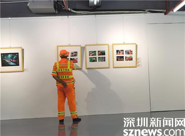 在羅湖美術(shù)館開展的第一天,王林泉就特意前去觀展,他是這次入展攝影類作品的作者之一,在與工作人員分享他攝影的作品《平凡的“戰(zhàn)疫”英雄》時還十分感慨:“這組圖是2020年2月份拍攝的,當(dāng)時新冠疫情十分嚴(yán)峻,拍攝時我問其中一名環(huán)衛(wèi)工人怕不怕?他說不怕是假的,但這些活兒也必須有人做。令我印象十分深刻。”