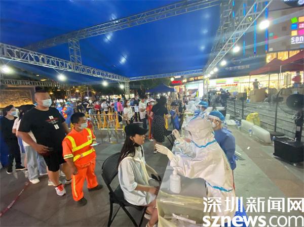 夜晚仍在進(jìn)行核酸采樣的深圳市羅湖醫(yī)院集團(tuán)醫(yī)護(hù)