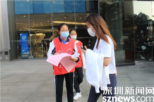 “叔叔,這是桂園街道給市民的一封信,請(qǐng)閱讀?!薄鞍⒁?,這是《深圳市民文明手冊(cè)》,請(qǐng)翻閱。”負(fù)責(zé)發(fā)放宣傳資料的小朋友大聲告訴過往的行人,深圳正在創(chuàng)建全國文明城市,請(qǐng)從“我”做起,為深圳加油,做文明市民。