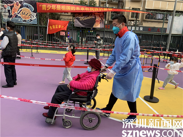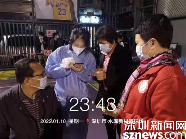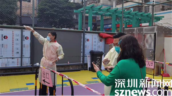 由于樓宇建設(shè)年代久遠(yuǎn),基礎(chǔ)設(shè)施較為落后,核酸檢測點設(shè)在新村社區(qū)僅有的一個籃球場空地上。羅湖區(qū)審計局下沉干部與社區(qū)黨委精心謀劃,按照“隔離檢測、分流進(jìn)場、專崗專人”的原則,在長28米、寬15米的小方陣?yán)?,搭起?條核酸檢測通道,按照引導(dǎo)員、計數(shù)員、掃碼員、講解員等不同職能,重構(gòu)了檢測流程,定人定崗“流水線”工作,迅速提升了檢測效率。