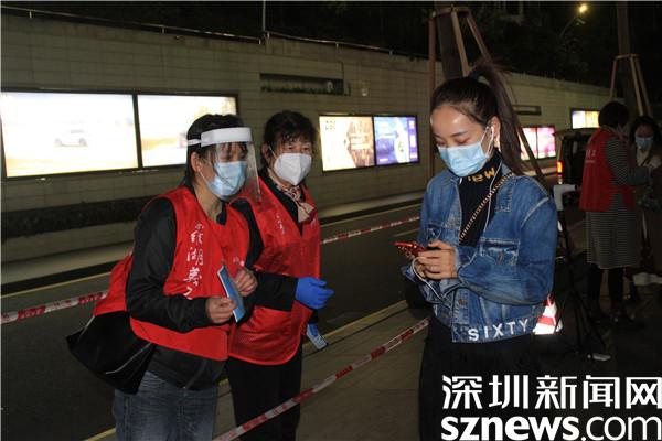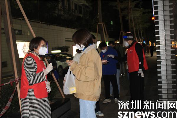 “楊妹,我來了,還帶來了一個人?!?3日晚,正在羅湖區(qū)桂園街道老圍社區(qū)禧程酒店核酸檢測點忙碌的社工楊女士,接到志愿者溫寶珍的電話。溫寶珍從“0107疫情”開始以來,每天都在核酸檢測點協(xié)助核酸檢測,這晚她把自己的兒媳婦吳永霞也帶來了。“婆婆剛從其他社區(qū)的核酸檢測點做完義工回來,聽說老圍社區(qū)需要人,放下飯碗就來了。婆婆這么大年紀(jì)了還沖在前面,我做兒媳婦的,怎么也要向婆婆學(xué)習(xí)啊?!眳怯老紝ι绻ふf?!皯?yīng)該的應(yīng)該的,疫情當(dāng)前,每個人都有義務(wù)出來與病毒作戰(zhàn),光是靠社區(qū)工作者不行,他們太累了。”溫寶珍邊說邊幫兒媳穿好義工服,把粵核酸的二維碼交給兒媳,并教兒媳如何在手機上查驗。