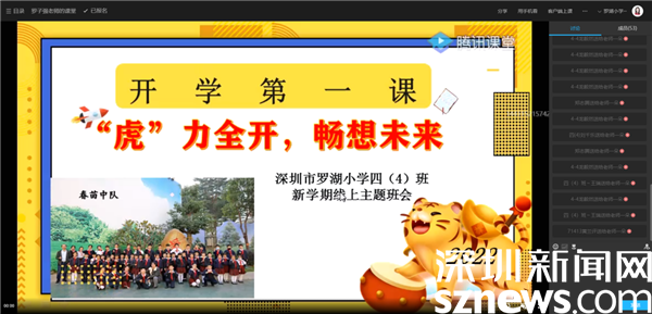 在升旗儀式后,同學們在線上觀看了奮戰(zhàn)在抗疫一線的老師的工作視頻。隨后,4至6年級的主題班會紛紛開始,圍繞“冬奧會”“學雷鋒”等內(nèi)容在線上課堂展開熱烈討論。