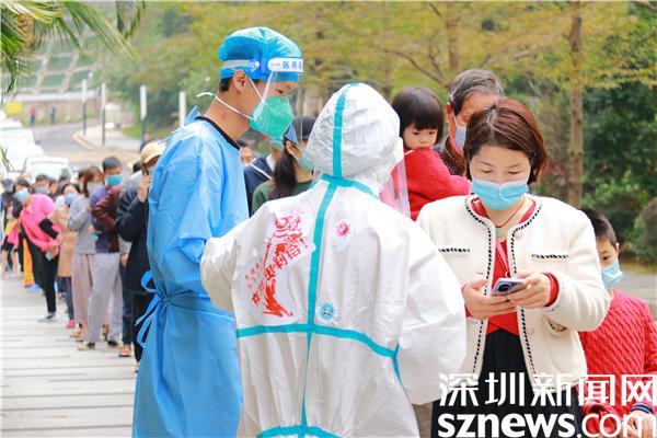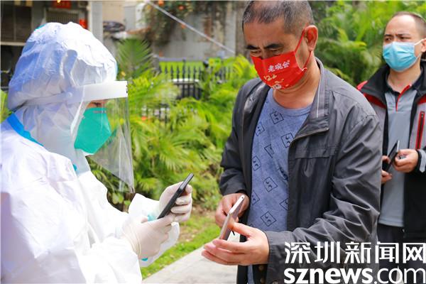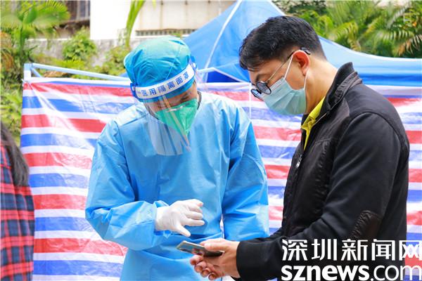 從2月17日開始,劉曉勇加入安保公司,被派到羅湖區(qū)東曉街道支援疫情防控工作,至今已有13天,13天里,他跟隨隊(duì)伍轉(zhuǎn)遍了東曉街道各個(gè)核酸檢測(cè)點(diǎn),從分流人群、維持秩序,到掃碼、引導(dǎo)居民操作、核酸檢測(cè)點(diǎn)布置、采樣結(jié)束收尾……對(duì)每個(gè)流程都了如指掌;13天里,他每天工作十幾個(gè)小時(shí),從早上九點(diǎn)到晚上十點(diǎn)、十一點(diǎn),只在中午輪班吃飯的時(shí)候有十幾分鐘休息時(shí)間。