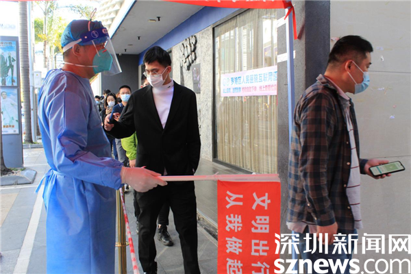 在2月份剛開始做義工的那幾天,深圳遭遇寒潮,他衣衫單薄,舉著粵核酸碼的牌子,手都凍僵了。但當(dāng)社工問他冷不冷,要不要回去添加衣服時(shí),他都說不冷。曾勇林不愿離開崗位,因?yàn)橛辛怂囊龑?dǎo)、維持,有他協(xié)助操作手機(jī),來檢測(cè)的居民就可以縮短檢測(cè)的時(shí)間,就不用挨冷受凍,其他志愿者就可以得到休息。曾勇林寧愿一個(gè)人凍著冷著,也要讓更多人受益。