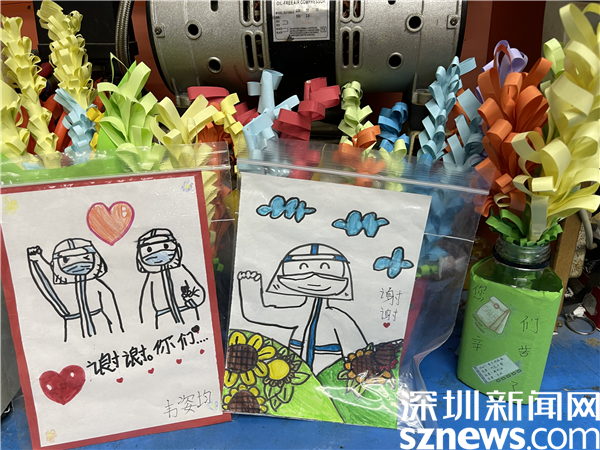 羅湖區(qū)蓮塘小學某班班長見醫(yī)護人員和義工志愿者日夜操勞,不辭辛苦,號召全班同學為防疫人員“送溫暖”。有的同學親手制作五顏六色的精美手折紙花,還有些同學別出心裁的繪制了“感謝大白”賀卡,禮物制作完成后,全班同學分頭行動,將手折紙花送到各核酸采樣點醫(yī)護人員和志愿者手中?!拔覀儙筒簧鲜裁矗鲂┝λ芗暗氖虑?,為大哥哥大姐姐送去感動和力量,也是為抗疫做貢獻?!眮碜粤_湖中醫(yī)院,在蓮塘村七巷小廣場支援的醫(yī)護人員們收到同學們送來的“禮物”非常開心,紛紛表示,雖然每天工作很辛苦,但能得到群眾尤其是孩子們的肯定十分幸福,禮物雖小,卻無比溫暖和感動。