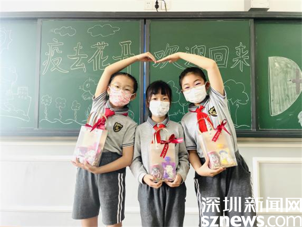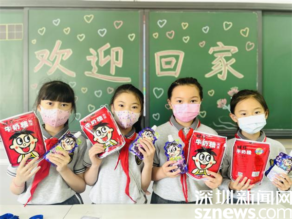三年級(jí)各班更是個(gè)性十足,旺仔、禮物袋、可吸果凍一應(yīng)俱全,孩子期盼的心被滿滿的愛充斥著。“學(xué)校就是我的家!”