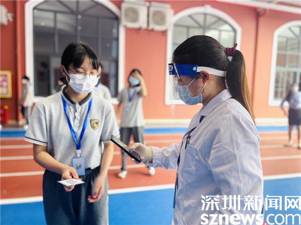 在深圳市諾思外語實(shí)驗(yàn)學(xué)校檢測現(xiàn)場,學(xué)生們在老師的組織下有序排隊(duì)進(jìn)行核酸檢測,嚴(yán)格執(zhí)行一米安全線排隊(duì)。各班級還準(zhǔn)備了定制姓名的紅色心動氣球、特別定制的核酸檢測卡......班主任和老師們?yōu)閷W(xué)生們準(zhǔn)備了許多的驚喜,讓學(xué)生感受到回歸校園和班集體的溫暖與快樂。