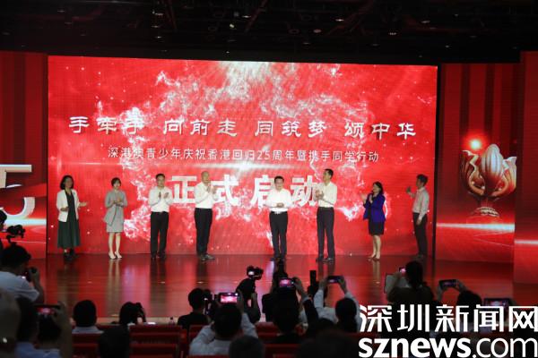 香港教育局局長楊潤雄,澳門教育及青年發(fā)展局副局長黃嘉祺,深圳市委教育工委副書記、市教育局黨組成員楊平分別致辭,充分肯定了攜手同學(xué)行動(dòng)對深港澳文化交流的貢獻(xiàn),并希望未來三地能有更加深入、密切的聯(lián)系,互惠雙贏,切實(shí)增強(qiáng)深港澳青少年的民族自豪感和凝聚力。隨后,領(lǐng)導(dǎo)與港澳青年代表上臺啟動(dòng)深港澳青少年慶祝香港回歸25周年系列活動(dòng)。