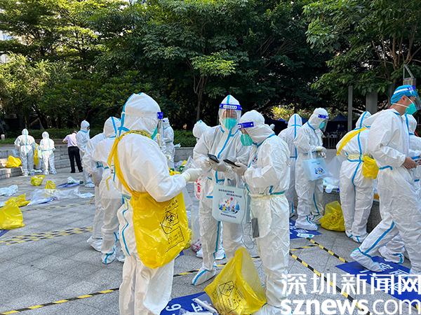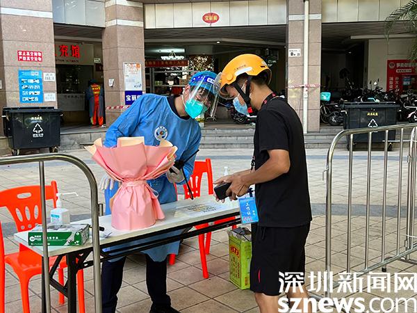 讀特客戶端·深圳新聞網(wǎng)2022年9月4日訊(記者 邱婕)“你好,請開門,我們來做核酸采樣了?!?月4日上午,位于羅湖區(qū)筍崗街道筍西社區(qū)的嘉寶田花園內(nèi),不斷響起核酸采樣小組工作人員的聲音。疫情當(dāng)前,筍西社區(qū)立刻進(jìn)入“戰(zhàn)時狀態(tài)”,科學(xué)劃分戰(zhàn)線、細(xì)致部署工作、嚴(yán)格精準(zhǔn)管控居家隔離醫(yī)學(xué)觀察對象。據(jù)了解,嘉寶田花園居民有2075戶共5675人,為了更加高效、安全地開展工作,社區(qū)工作站劃分了35個小組,每組由一名醫(yī)護(hù)人員、一名安保人員和一名區(qū)下沉干部組成,三人成組完成上門核酸采樣工作。