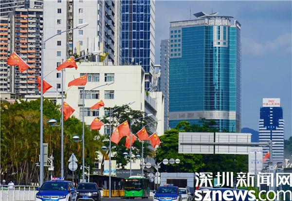 五星紅旗迎風(fēng)飄揚(yáng) 羅湖國慶氛圍濃郁