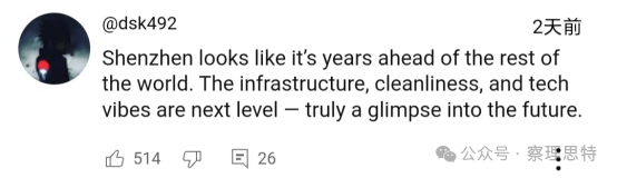 (“深圳看起來比世界其他地方領(lǐng)先好幾年。基礎(chǔ)設(shè)施、清潔度和科技氛圍都是一個新的水平——真正讓人看到了未來。”)
