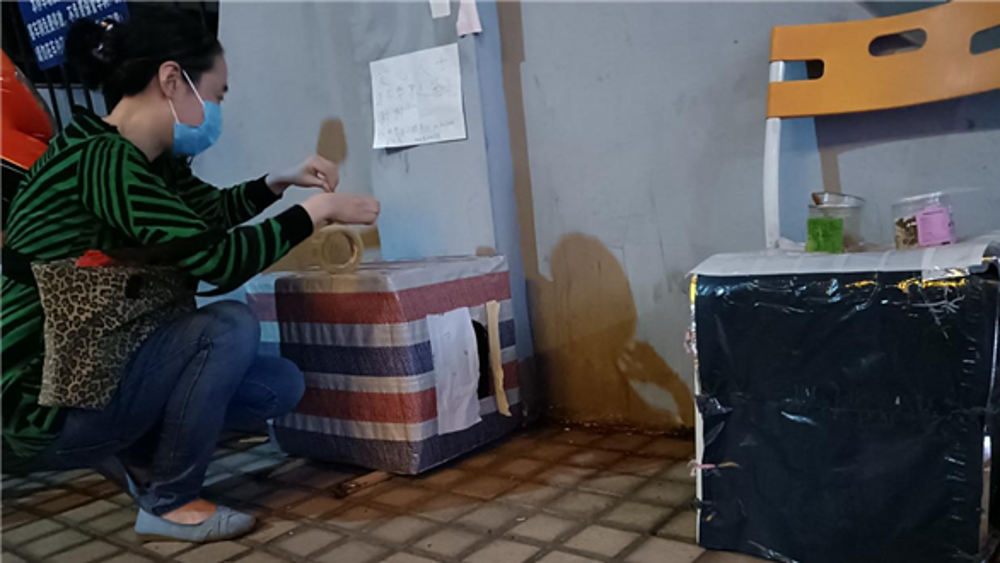 近日,在核酸檢測點流浪了幾個月的四只貓咪有了固定的貓屋和貓食堂,結束了風雨飄搖的日子。