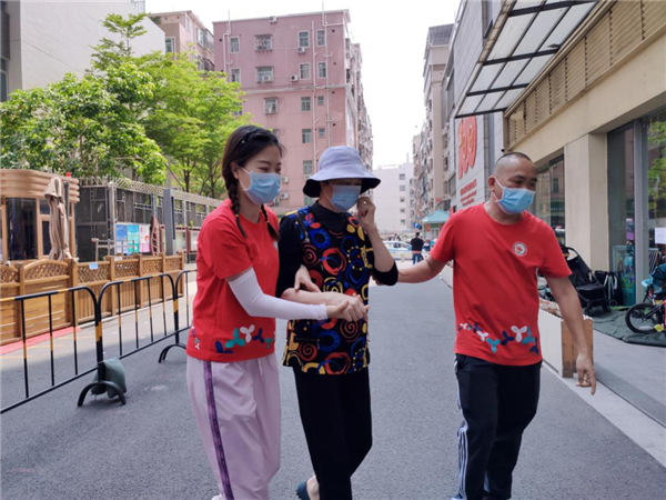 居住在羅湖黃貝嶺社區(qū)65歲的程奶奶一直很想為構筑免疫屏障貢獻“一臂之力”,但她由于糖尿病引發(fā)失明行動不便,就拖延至今。在經過社康醫(yī)生專業(yè)評估后,社區(qū)工作人員暖心上門,一路相扶,十指緊扣,將程奶奶送去疫苗接種點,完成接種。