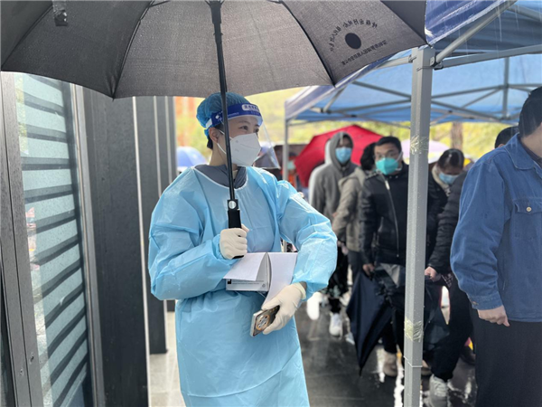自深圳“0215”疫情突發(fā)以來,羅湖東門街道城東社區(qū)負責(zé)的湖貝社區(qū)公園臨時核酸點再次啟動。核酸點重啟的那天,雨嘩啦啦的下,負責(zé)人事安排、后勤保障的盧映均在工作群看到入口處的同事僅穿著雨衣服務(wù)居民的照片,舍不得讓站崗的同事長時間淋雨,恨不得自己去扛帳篷,奈何6個月身孕,只能安排現(xiàn)場的同事挪動帳篷,那帳篷沉得要四位男同志才扛得動。