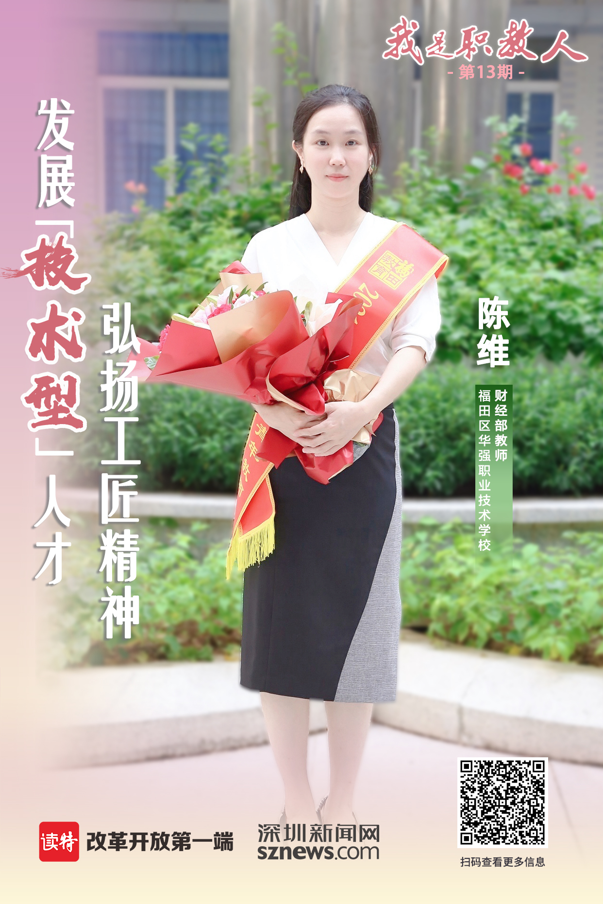“對生活有熱愛,才會變得有趣;對生活和世界保持好奇心,才能擁有創(chuàng)造力和想象力。”從事職業(yè)教育的第十年,深圳市福田區(qū)華強職業(yè)技術(shù)學校財經(jīng)部老師陳維,始終期望學生成為有趣、有技術(shù)、有創(chuàng)造力,能為社會做出貢獻的人。