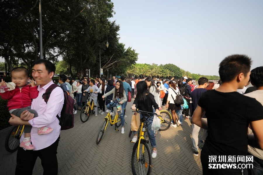 鵬城眼|深圳人假日勤動腳 共享單車“擠爆”深圳灣