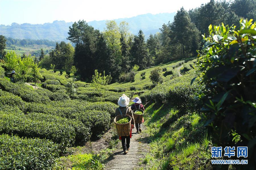 4月2日,茶農背著采摘的春茶行走在重慶市南川區(qū)興又緣茶園。