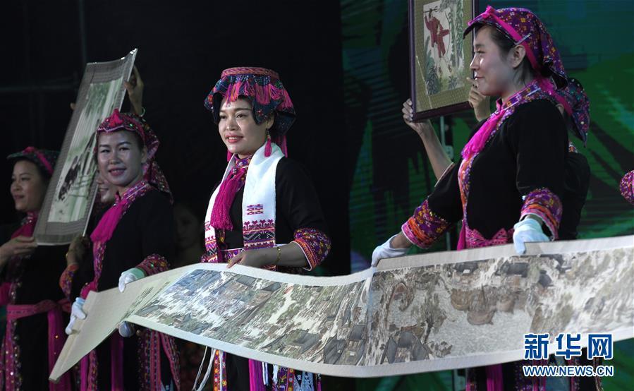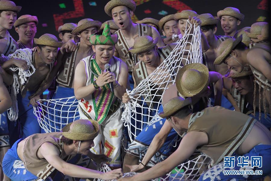 4月18日,在海南省五指山市,演員們表演節(jié)目慶祝“三月三”。當日是農歷三月初三,海南省黎族苗族同胞齊聚五指山市,歡慶“三月三”。新華社記者 趙穎全 攝