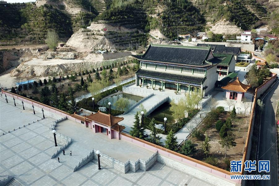 這是在蘭州黃河北岸拍攝的甘肅省圖書館文溯閣《四庫全書》藏書館全景(4月22日無人機拍攝)。