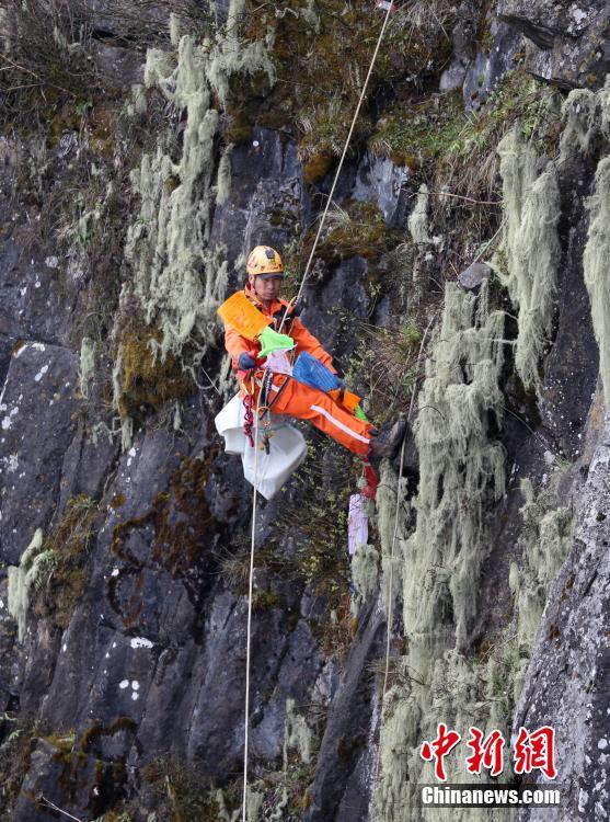 當(dāng)日,“五一”小長假最后一天,峨眉山景區(qū)的環(huán)衛(wèi)工、山地救援隊的志愿者,在懸崖下200米清理游客丟棄的垃圾。 中新社記者劉忠俊 攝