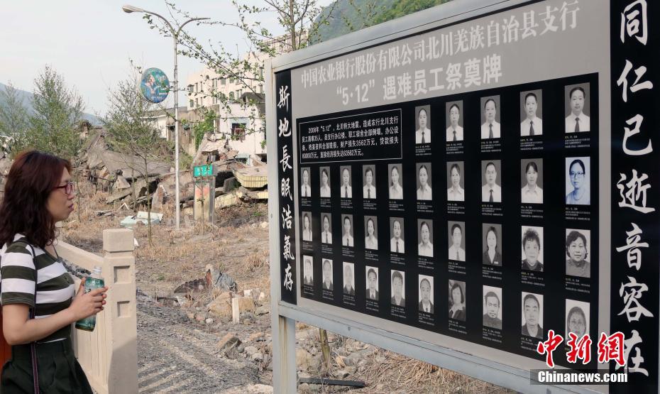 5月初,記者專程前往四川北川,探訪老縣城地震遺址。遺址內(nèi)莊嚴(yán)肅穆,不時(shí)有民眾參觀悼念。據(jù)管理者介紹,這里每天都有數(shù)百人前往憑吊,節(jié)假日則有數(shù)千人。在這里,保留著地震當(dāng)時(shí)破損的房屋以及修建的遇難者公墓等。在每一個(gè)破損的建筑前都設(shè)立有當(dāng)時(shí)建筑的使用單位,有的還豎立著遇難者的名單。當(dāng)日,巧遇了多位當(dāng)年在北川職業(yè)中學(xué)就讀的師生,他們結(jié)伴同行在北川職業(yè)中學(xué)遺址悼念在地震中遇難的師生。中新社記者 任海霞 攝