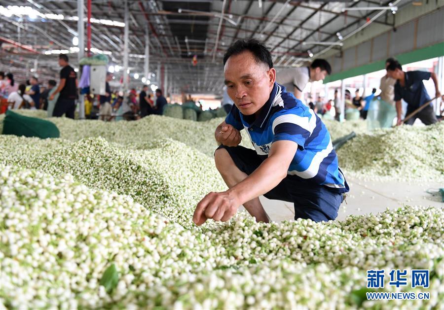 日前,“中國(guó)茉莉之鄉(xiāng)”廣西橫縣茉莉花全面進(jìn)入采摘上市期,當(dāng)?shù)剀岳蚧ǚN植園和交易市場(chǎng)一片繁忙。據(jù)介紹,橫縣茉莉花種植面積達(dá)10.5萬(wàn)畝,花農(nóng)約33萬(wàn)人,年產(chǎn)茉莉鮮花8.5萬(wàn)噸,有130多家花茶企業(yè),年產(chǎn)茉莉花茶6.5萬(wàn)噸。新華社記者陸波岸 攝