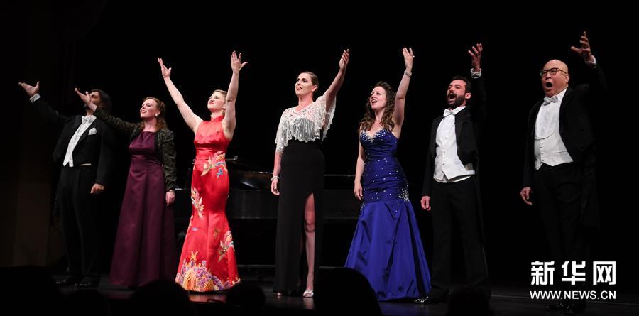6月30日,在美國加利福尼亞州舊金山赫伯斯特劇院,著名華裔歌唱家田浩江(右一)和青年歌唱家們演唱《從茉莉花到圖蘭朵》。當(dāng)日,著名華裔歌唱家田浩江偕6位參加過iSING!國際青年歌唱家藝術(shù)節(jié)的歌唱家舉辦“田浩江舊金山演唱會”。iSING!國際青年歌唱家藝術(shù)節(jié)創(chuàng)辦于2011年,集教育、訓(xùn)練和演出于一體,為全球青年歌者提供學(xué)習(xí)和實踐的機會。在本場演唱會上,來自不同國家的藝術(shù)家們演唱中外經(jīng)典歌曲,為觀眾獻上一臺中西文化交融的聽覺盛宴。新華社記者吳曉凌攝