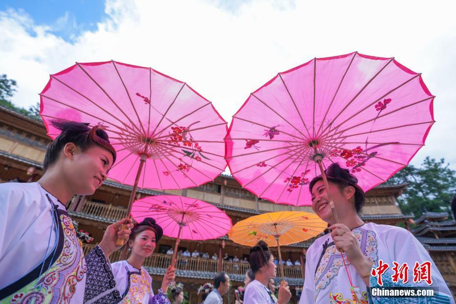 7月14日,貴州榕江,相思節(jié)上身著盛裝的侗族婦女。當日,貴州省榕江縣樂里七十二寨舉行“六月六”相思節(jié),當地少數民族身著節(jié)日的盛裝,舉行盛裝巡游、吹蘆笙、踩歌堂等民俗活動歡度節(jié)日。中新社記者賀俊怡 攝