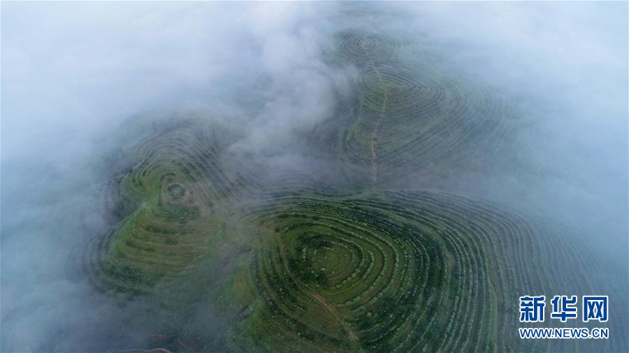 寧夏彭陽:最美旱作梯田 云海宛如仙境