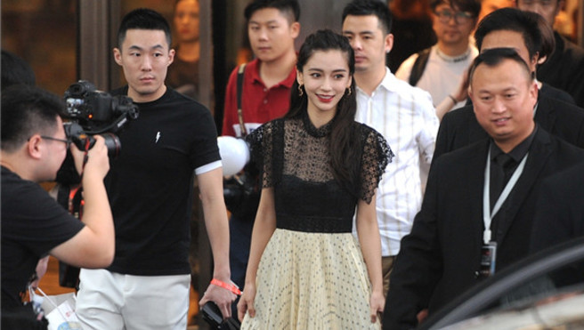 Angelababy穿黑色蕾絲薄紗 ...