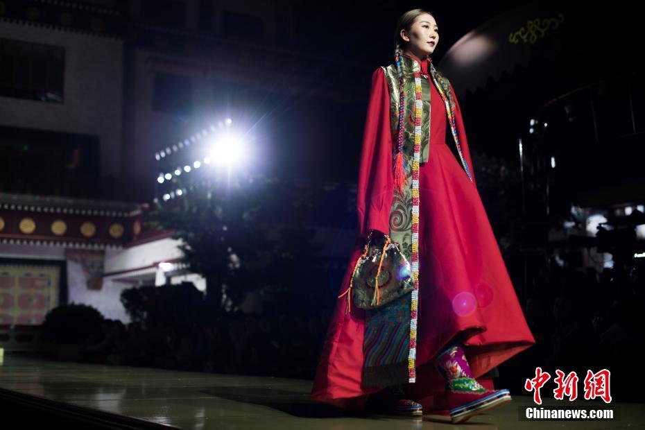 8月12日晚,由西藏職業(yè)技術學院與北京服裝學院共同打造的“凈美雪頓·美好生活”西藏民族服裝與服飾展演活動在拉薩舉行?,F場通過傳統(tǒng)篇、現代篇與未來篇三個篇章,展演了藏族傳統(tǒng)服裝26套,設計創(chuàng)新服裝58套,共計84套服裝。圖為模特展示現代設計的創(chuàng)新藏族服飾。中新社記者何蓬磊 攝