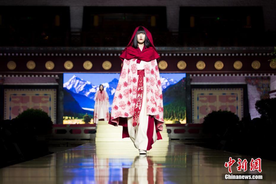 8月12日晚,由西藏職業(yè)技術(shù)學(xué)院與北京服裝學(xué)院共同打造的“凈美雪頓·美好生活”西藏民族服裝與服飾展演活動(dòng)在拉薩舉行?,F(xiàn)場(chǎng)通過傳統(tǒng)篇、現(xiàn)代篇與未來篇三個(gè)篇章,展演了藏族傳統(tǒng)服裝26套,設(shè)計(jì)創(chuàng)新服裝58套,共計(jì)84套服裝。圖為模特展示現(xiàn)代設(shè)計(jì)的創(chuàng)新藏族服飾。中新社記者何蓬磊 攝