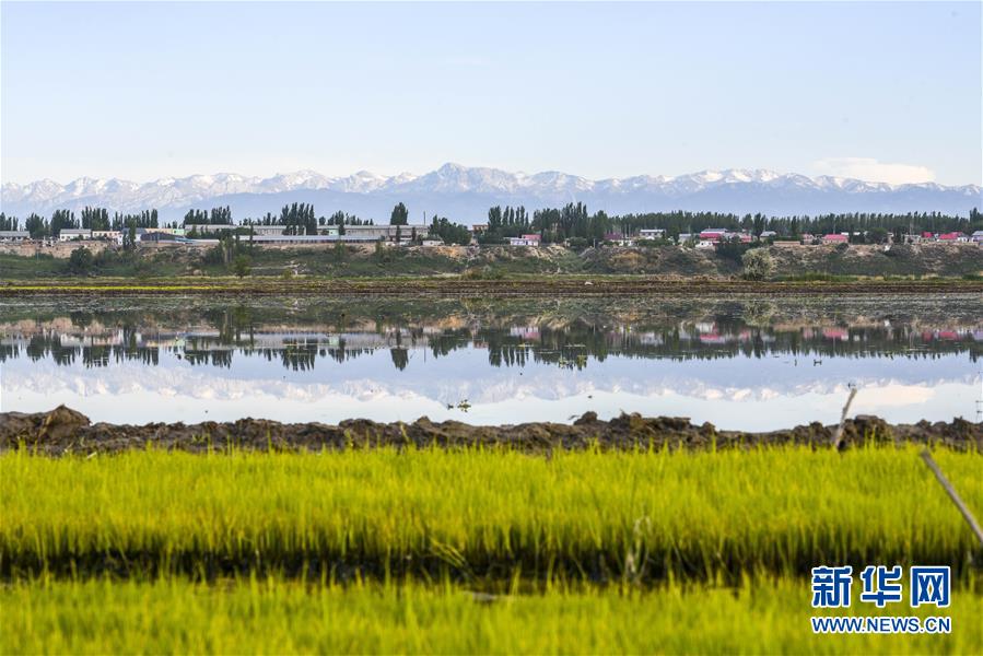 在新疆察布查爾錫伯自治縣種羊場(chǎng)托海依村拍攝的一處農(nóng)田,秧苗與遠(yuǎn)處的雪山相映成趣(5月21日攝)。近日,隨著氣溫漸高,地處新疆伊犁河谷的察布查爾錫伯自治縣迎來(lái)插秧高峰期,田間地頭一派繁忙景象。塊塊稻田水滿(mǎn)如鏡,田間防護(hù)林枝繁葉茂,遠(yuǎn)處雪山依稀可見(jiàn),如一幅在大地上鋪展開(kāi)的生態(tài)畫(huà)卷。新華社記者胡虎虎 攝 ? [責(zé)任編輯:李曉蕾]