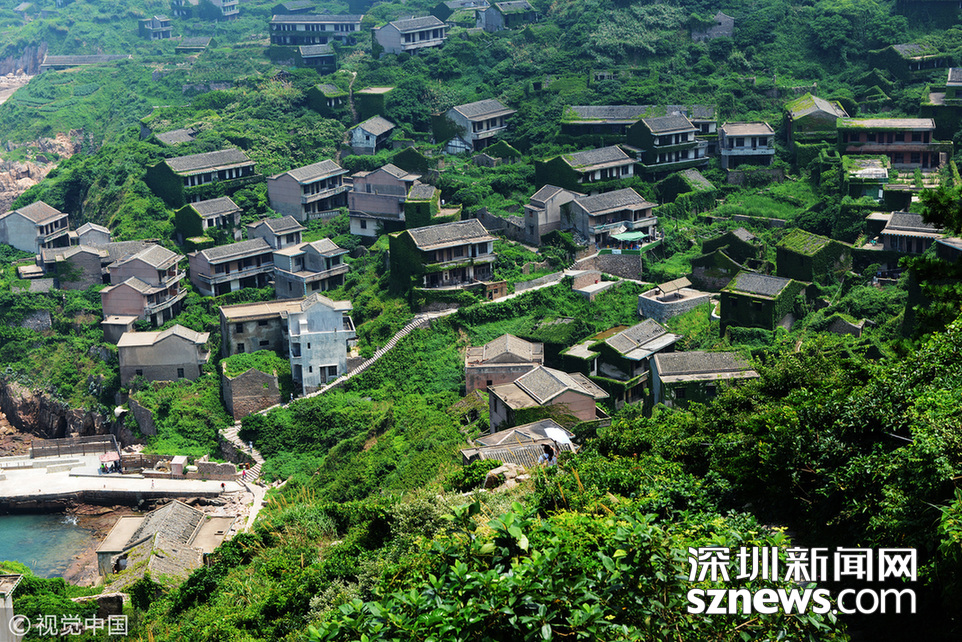 2018年8月8日,浙江舟山,掩映在綠色植被中的“無人村”,暑假里日均接待游客5、600人,高峰期每天到訪者達(dá)千人。