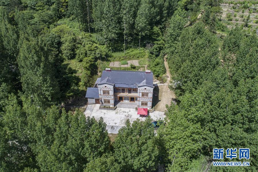 堰河村一棟建在深山中的仿古別墅(5月12日無人機(jī)拍攝)。