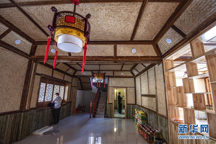 堰河村一接近完成裝修的仿古別墅的客廳(5月13日攝)。