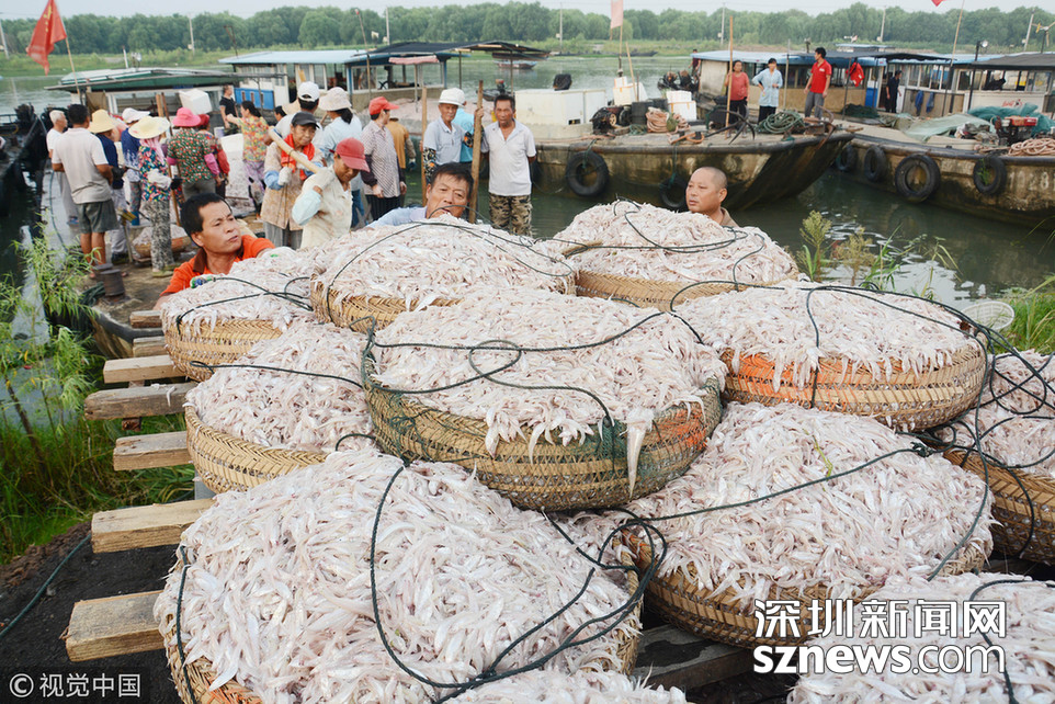 ?2018年8月12日,江蘇淮安洪澤湖全面開捕第四天,漁民進(jìn)入銀魚和毛刀魚捕撈高峰期。