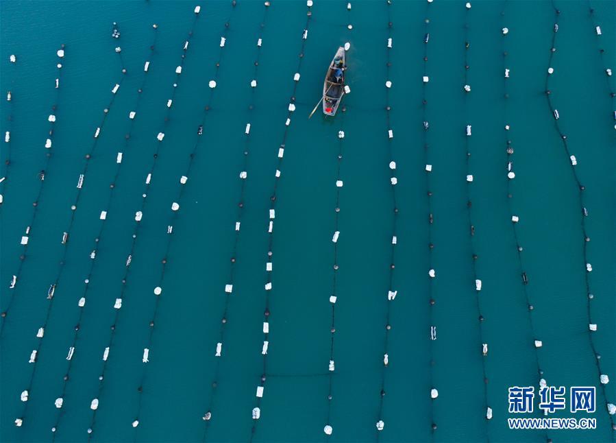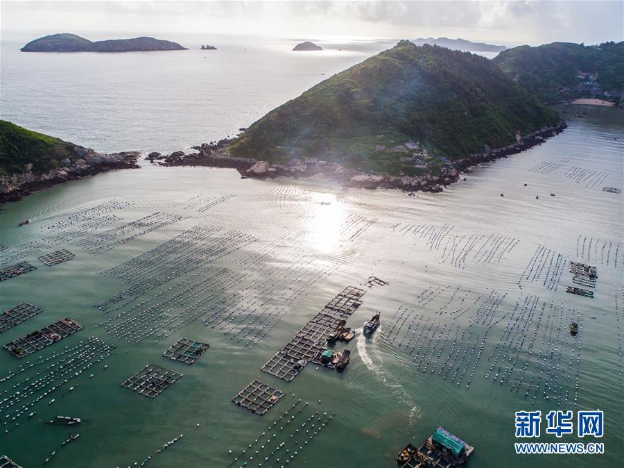8月18日,南麂島海域的“海上牧場”養(yǎng)殖區(qū)內(nèi),漁民準(zhǔn)備進(jìn)行養(yǎng)殖作業(yè)(無人機拍攝)。進(jìn)入8月,浙江省溫州市平陽縣南麂鎮(zhèn)海域上大片的大黃魚、貽貝等特色海產(chǎn)品養(yǎng)殖區(qū)域迎來豐收季節(jié),養(yǎng)殖戶們駕駛漁船在養(yǎng)殖區(qū)海域進(jìn)行打撈收獲,在碧海藍(lán)天下構(gòu)成了一幅“海上牧場”的美麗豐收景象。近年來,南麂鎮(zhèn)政府引導(dǎo)漁民養(yǎng)殖戶充分發(fā)揮“靠海吃?!钡馁Y源優(yōu)勢,大力發(fā)展海洋養(yǎng)殖經(jīng)濟(jì)和海島旅游經(jīng)濟(jì),實現(xiàn)了南麂由“生態(tài)美”向“產(chǎn)業(yè)美”,“產(chǎn)業(yè)美”向“經(jīng)濟(jì)美”的轉(zhuǎn)變。同時該鎮(zhèn)堅持以大黃魚、貽貝等為特色產(chǎn)業(yè)支撐,精準(zhǔn)發(fā)展高效海洋養(yǎng)殖業(yè),重點培養(yǎng)一批新型職業(yè)漁民,依靠專業(yè)技術(shù)支持,實現(xiàn)深海仿生養(yǎng)殖,讓好生態(tài)造就好品質(zhì),重點打造南麂養(yǎng)殖品牌,組建營銷網(wǎng)絡(luò),拓展特色海產(chǎn)品市場。新華社記者 徐昱攝