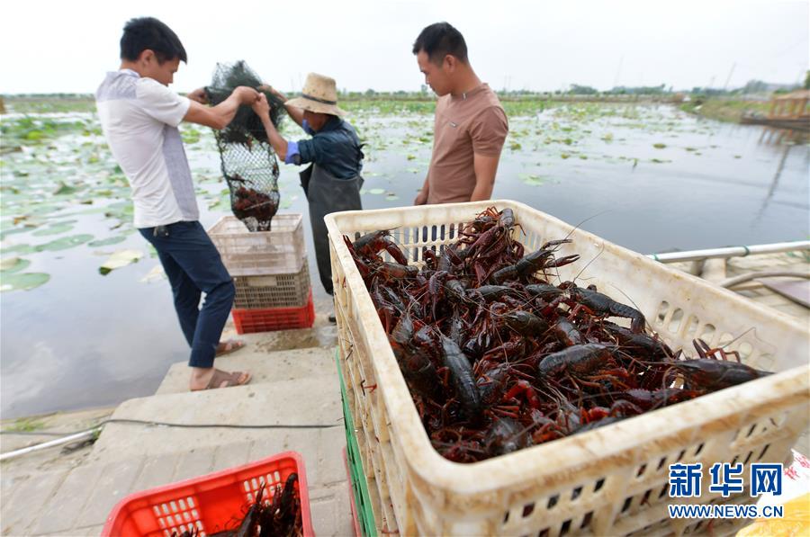 5月23日,在南昌市新建區(qū)象山鎮(zhèn)河林村,當(dāng)?shù)剞r(nóng)戶將捕獲的小龍蝦搬運上岸裝箱。近日,江西省南昌市新建區(qū)1.7萬畝水域養(yǎng)殖小龍蝦喜獲豐收,當(dāng)?shù)剞r(nóng)戶紛紛將鮮活的小龍蝦捕獲上岸,裝箱外銷。據(jù)了解,近年來,南昌市新建區(qū)發(fā)揮轄區(qū)內(nèi)河道縱橫,水田眾多的優(yōu)勢,支持鼓勵農(nóng)戶發(fā)展小龍蝦養(yǎng)殖業(yè),為當(dāng)?shù)剞r(nóng)戶開辟了一條特色養(yǎng)殖的致富之路。新華社記者彭昭之 攝