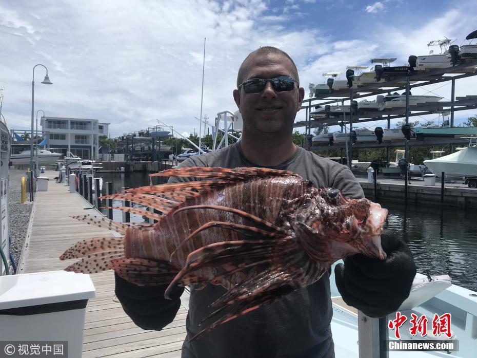 8月21日訊(具體拍攝時間不詳),近日,來自長島的Timothy Blasko打破了記錄,他捕獲了大西洋最重的獅子魚。37歲的Timothy Blasko是一名技術(shù)精湛的捕魚者,當(dāng)天,他和朋友們在佛羅里達(dá)群島伊斯拉莫拉達(dá)海岸捕魚時,遇到了這條大魚。Timothy向朋友要來了魚叉,瞄準(zhǔn)大魚的下方位置叉去,正中目標(biāo)成功捕獲。當(dāng)他們把這條魚和當(dāng)天捕獲的其它魚排在一起時,他們猜測這條魚可能會破紀(jì)錄?!八喼笔仟{子魚中的哥斯拉!” Timothy描述道,“這條巨大的獅子魚重達(dá)3.1磅,刷新了大西洋迄今最重獅子魚的國家紀(jì)錄?!眻D片來源:視覺中國