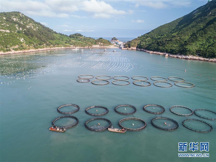 8月18日,漁船在南麂島馬祖岙海域的“海上牧場(chǎng)”大黃魚養(yǎng)殖區(qū)內(nèi)喂食(無(wú)人機(jī)拍攝)。南麂島位于浙江東南海域,水質(zhì)好,水溫、鹽度都適合大黃魚等養(yǎng)殖魚類的生長(zhǎng)繁殖,因此當(dāng)?shù)氐乃a(chǎn)品也一直保持了較高的品質(zhì)和口碑。進(jìn)入8月,浙江省溫州市平陽(yáng)縣南麂鎮(zhèn)海域上大片的大黃魚、貽貝等特色海產(chǎn)品養(yǎng)殖區(qū)域迎來(lái)豐收季節(jié),養(yǎng)殖戶們駕駛漁船在養(yǎng)殖區(qū)海域進(jìn)行打撈收獲,在碧海藍(lán)天下構(gòu)成了一幅“海上牧場(chǎng)”的美麗豐收景象。近年來(lái),南麂鎮(zhèn)政府引導(dǎo)漁民養(yǎng)殖戶充分發(fā)揮“靠海吃?!钡馁Y源優(yōu)勢(shì),大力發(fā)展海洋養(yǎng)殖經(jīng)濟(jì)和海島旅游經(jīng)濟(jì),實(shí)現(xiàn)了南麂由“生態(tài)美”向“產(chǎn)業(yè)美”,“產(chǎn)業(yè)美”向“經(jīng)濟(jì)美”的轉(zhuǎn)變。同時(shí)該鎮(zhèn)堅(jiān)持以大黃魚、貽貝等為特色產(chǎn)業(yè)支撐,精準(zhǔn)發(fā)展高效海洋養(yǎng)殖業(yè),重點(diǎn)培養(yǎng)一批新型職業(yè)漁民,依靠專業(yè)技術(shù)支持,實(shí)現(xiàn)深海仿生養(yǎng)殖,讓好生態(tài)造就好品質(zhì),重點(diǎn)打造南麂養(yǎng)殖品牌,組建營(yíng)銷網(wǎng)絡(luò),拓展特色海產(chǎn)品市場(chǎng)。新華社記者 徐昱攝