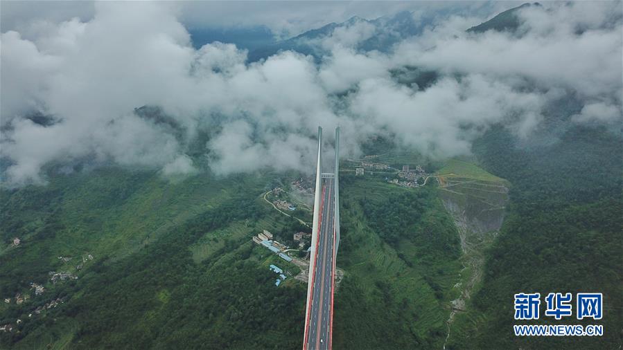 8月9日無(wú)人機(jī)航拍的北盤江大橋。 新華社記者歐東衢攝