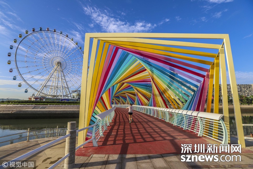 “七彩橋”亮相青島 色彩斑斕宛如童話世界