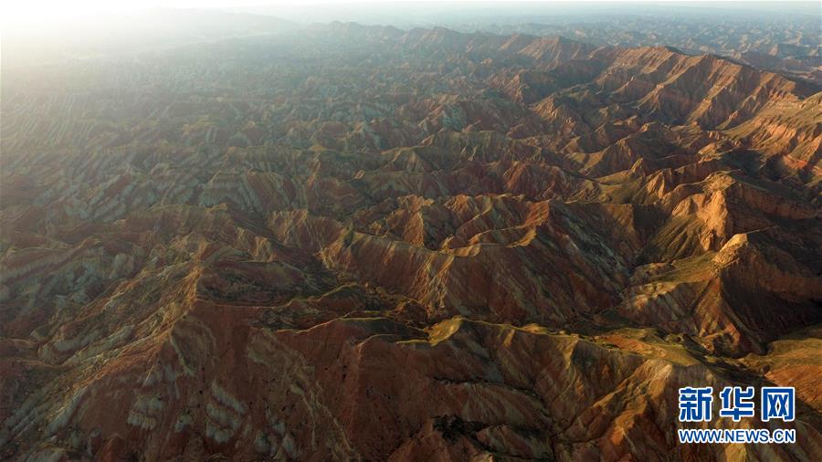 這是7月15日拍攝的蘭州樹屏丹霞地貌。蘭州樹屏丹霞國家地質公園位于甘肅省蘭州市永登縣咸水河流域及其毗鄰地區(qū),分布在蘭州市所屬的永登縣、皋蘭縣、西固區(qū)、安寧區(qū),主體位于永登縣樹屏鎮(zhèn)、苦水鎮(zhèn)和西固區(qū)河口鎮(zhèn)。其主體地質遺跡為丹霞和彩色丘陵,登高遠眺,綿延起伏,絢爛瑰麗,如同大自然創(chuàng)作的壯美油畫。新華社記者陳曄華 攝