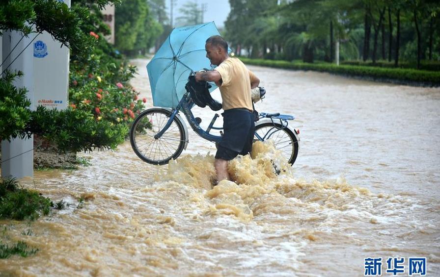 當(dāng)日,今年第22號臺風(fēng)“山竹”過境后的廣東陽江陽春市遭遇暴雨襲擊,城市部分區(qū)域出現(xiàn)內(nèi)澇。 新華社記者周科攝